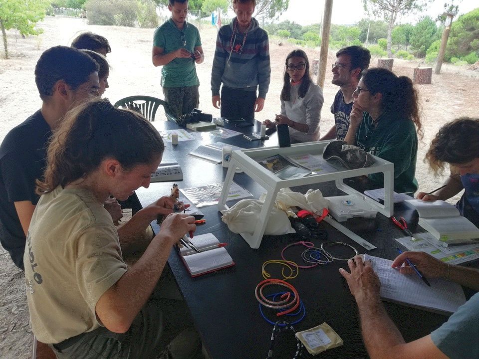 À volta da mesa, o grupo inicia mais um trabalho de medição, pesagem, anilhagem e de introdução dos resultados na base de dados do ICNF.